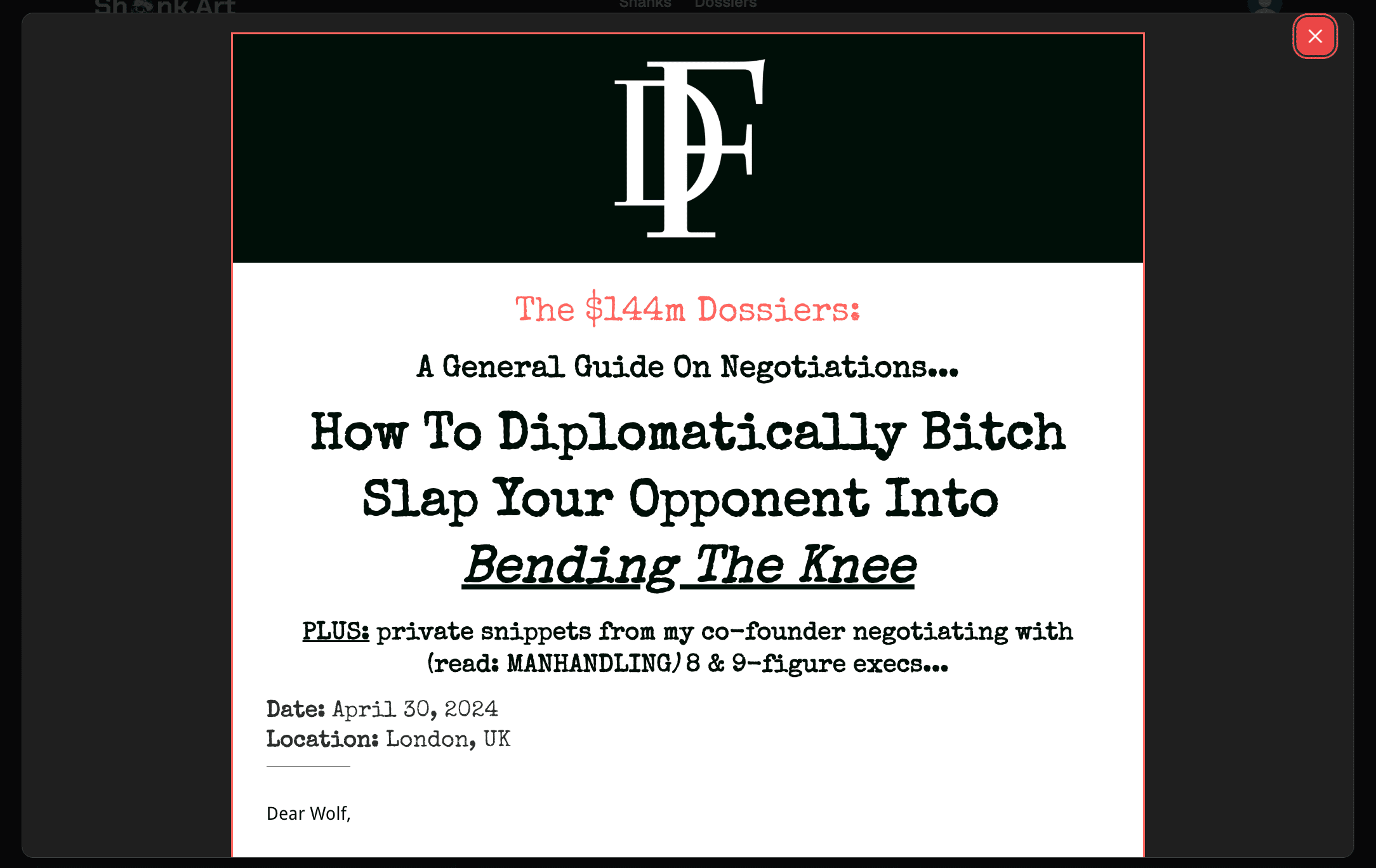 Shank.Art is a private web app with weaponized sales wisdom including: